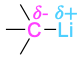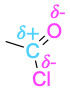 Elements such as oxygen, nitrogen, fluorine, and chlorine are more electronegative than carbon, so a carbon atom bonded to one of these atoms has a partial positive charge (δ+). Metals are less electronegative than carbon, so a carbon atom bonded to a metal has a partial negative charge (δ−). Electrostatic potential maps of chloromethane and methyllithium illustrate these charge distributions, showing that the carbon atom in chloromethane is electron-poor (blue) while the carbon in methyllithium is electron-rich (red).